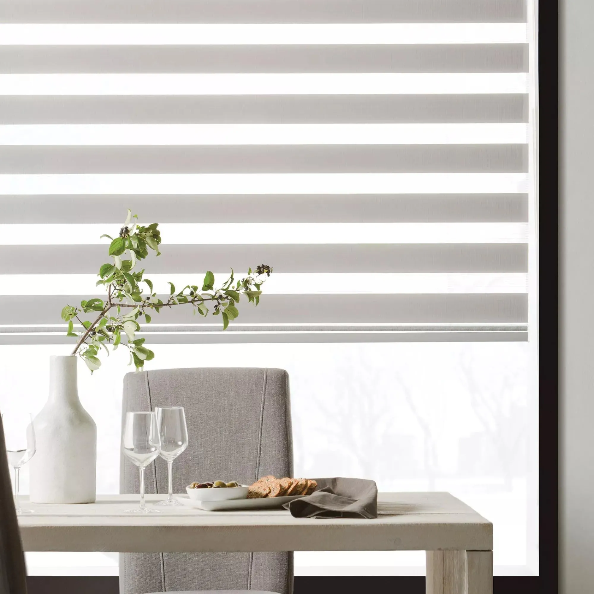 When safety and style unite, your home breathes a sigh of relief. Looking for a window covering that poses no risk to your family? Go cordless with sheer shade. Your window treatments will be stylish and functional. This shade features a striped design with alternating sheer fabric for optimal light diffusion.