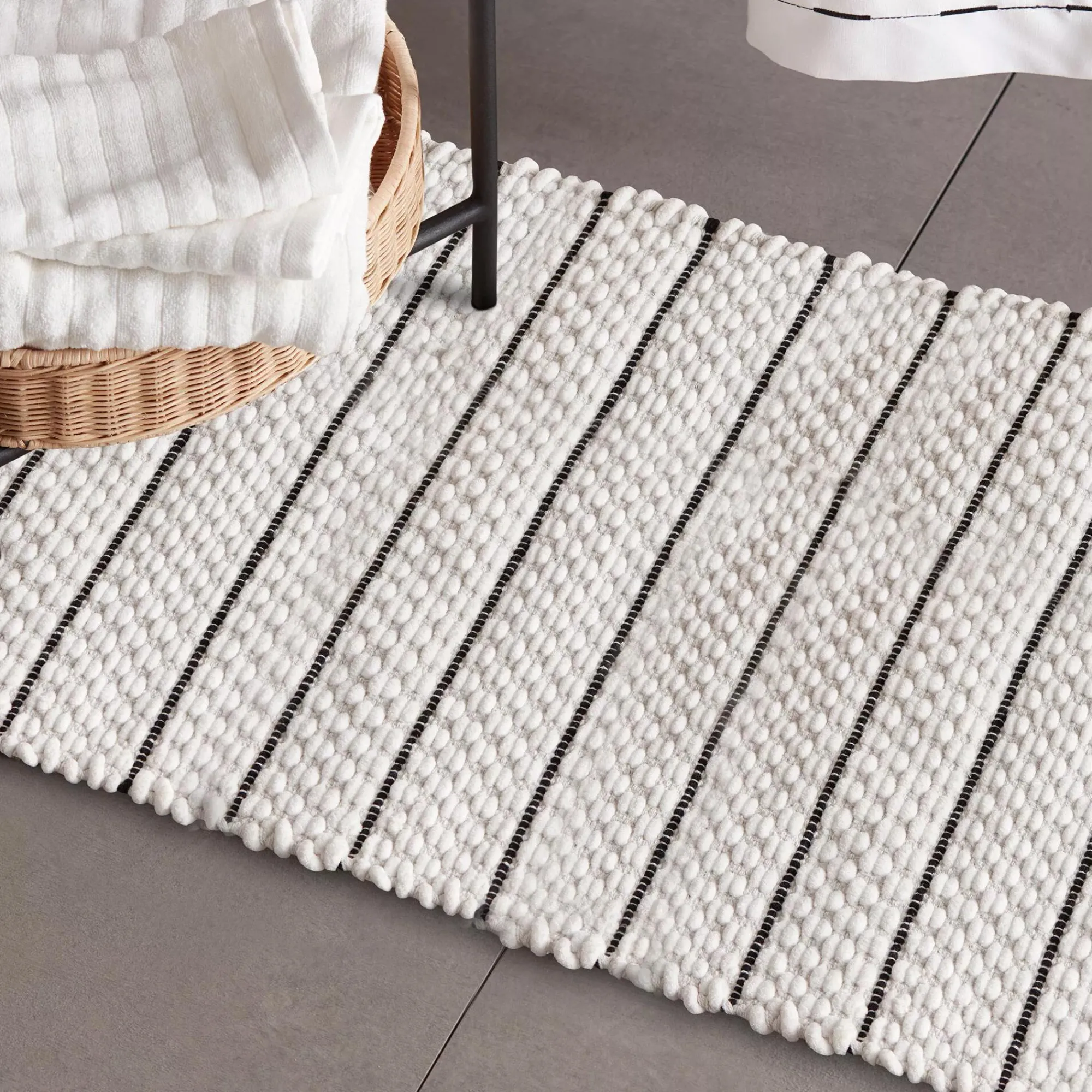 Clearance Bouclair White Bathmat with Black Stripes