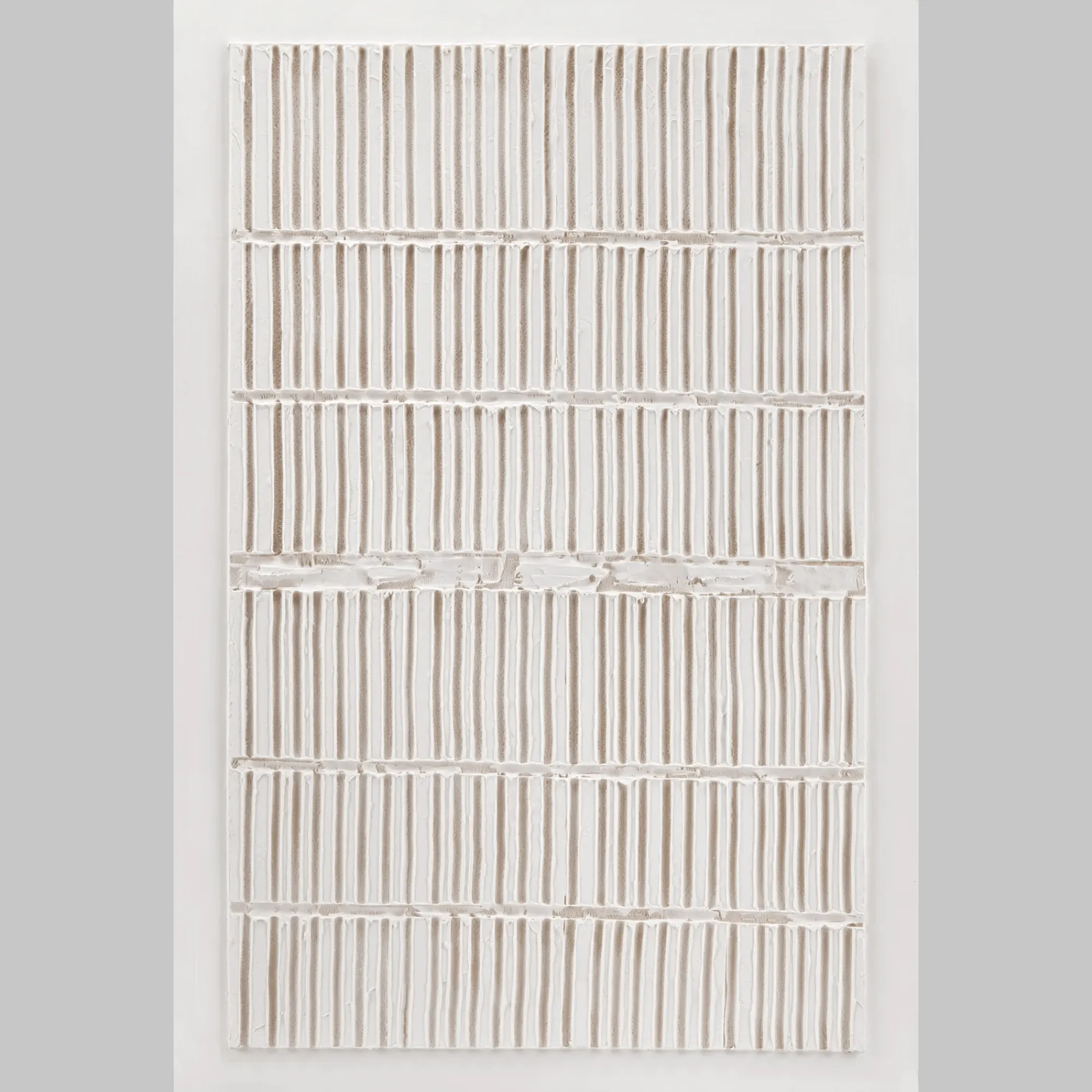 Carved lines, soft white tones, and a mineral finish that plays with light, this abstract canvas brings quiet structure to your walls. A refined piece for calm, considered spaces.