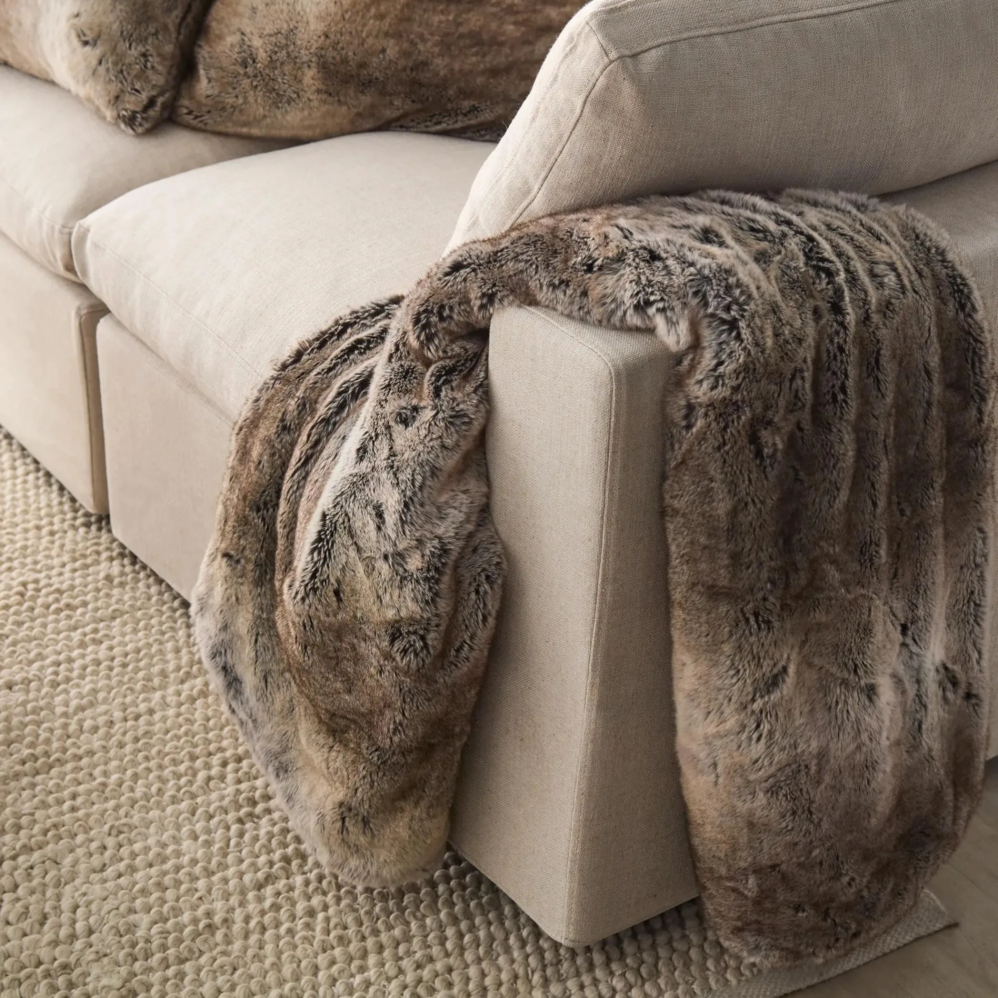 Cozy up in style with this fantastically soft faux fur throw. Featuring a rich texture, it has the look of a wolf’s coat and all the plushy goodness of fur. The perfect comfy touch in any room, it’s ideal for snuggling, for draping over a chair or at the foot of a bed for layered luxury. The only problem with this this grey beauty is you might never want to get out from under it!