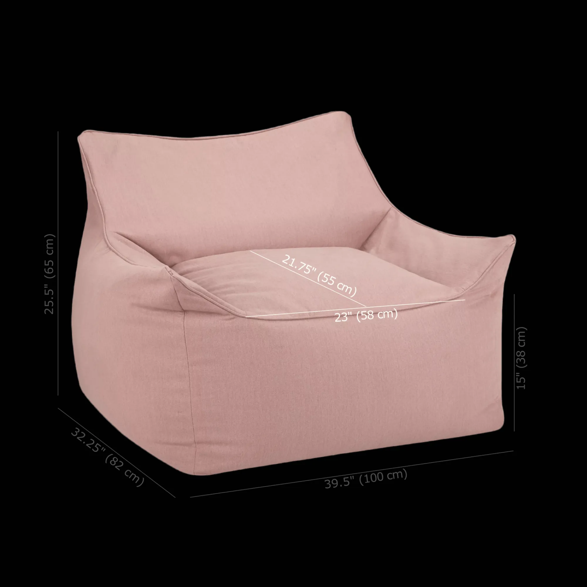 Seat depth : 21.75 in (55 cm)