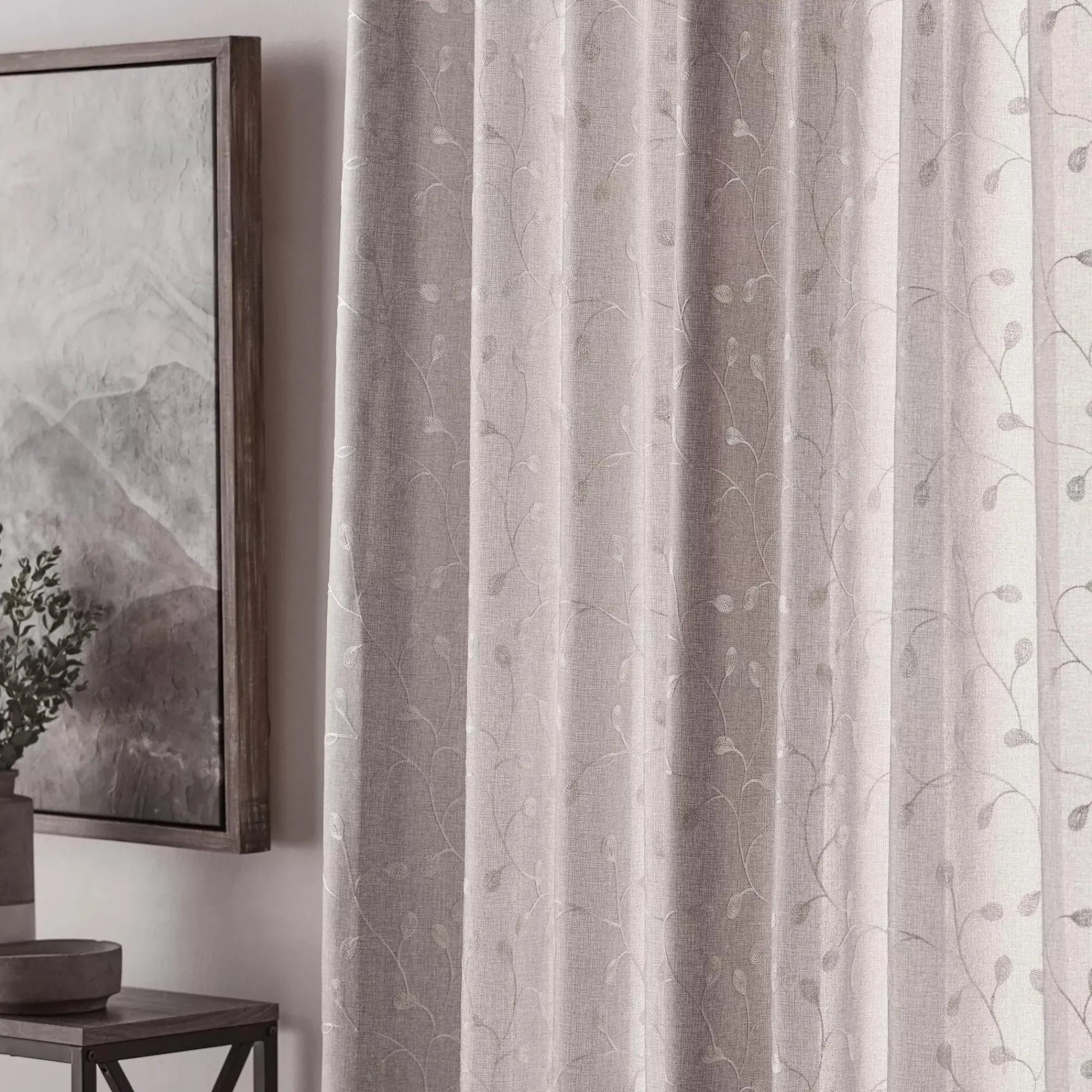 Add a little romance to your space with this sheer curtain. Semi-transparent and showcasing a leafy pattern, it will give an ethereal vibe to any room. Great for letting in light while providing privacy, its round grommets make it a timeless classic. Each panel is sold separately.