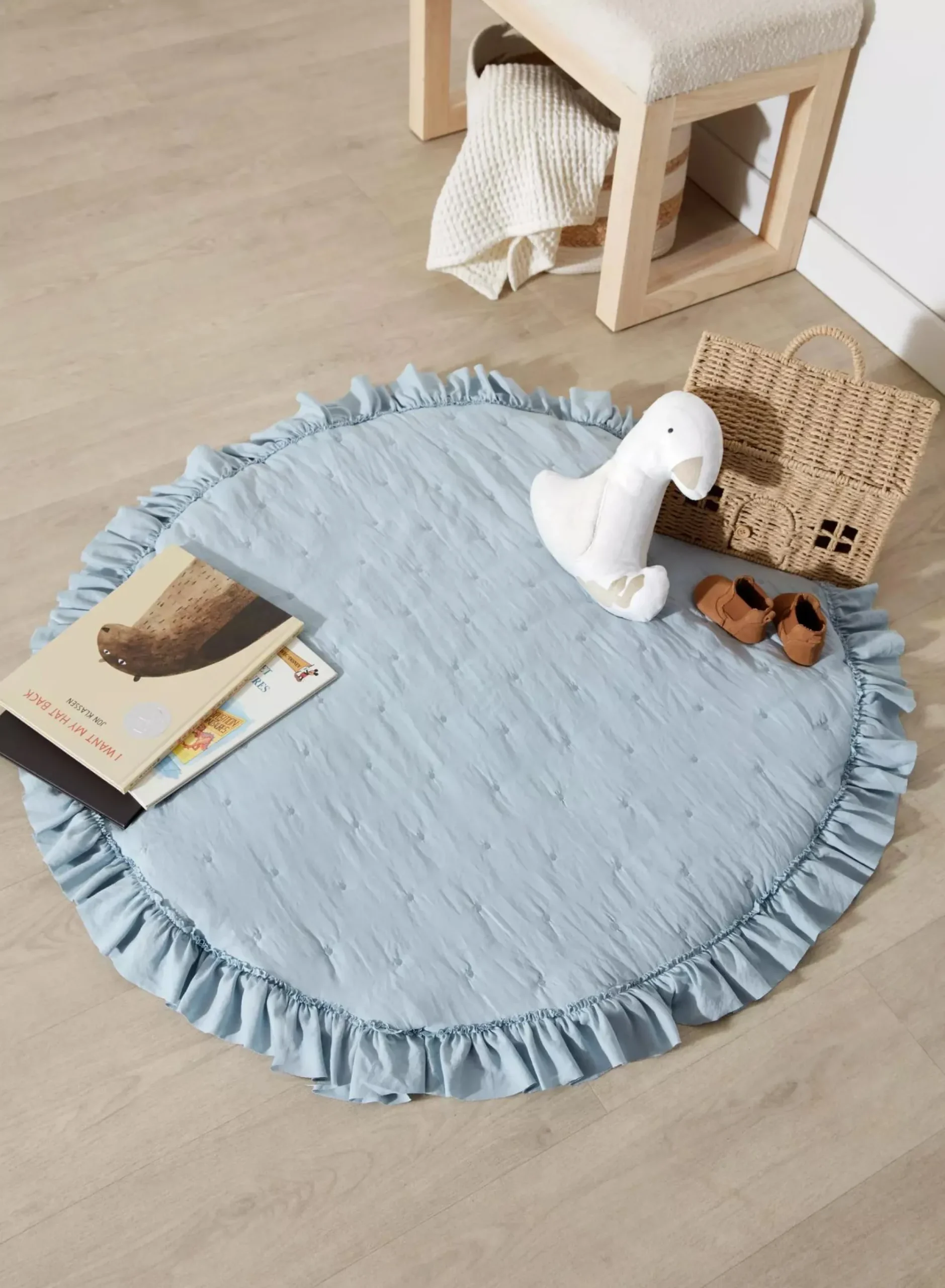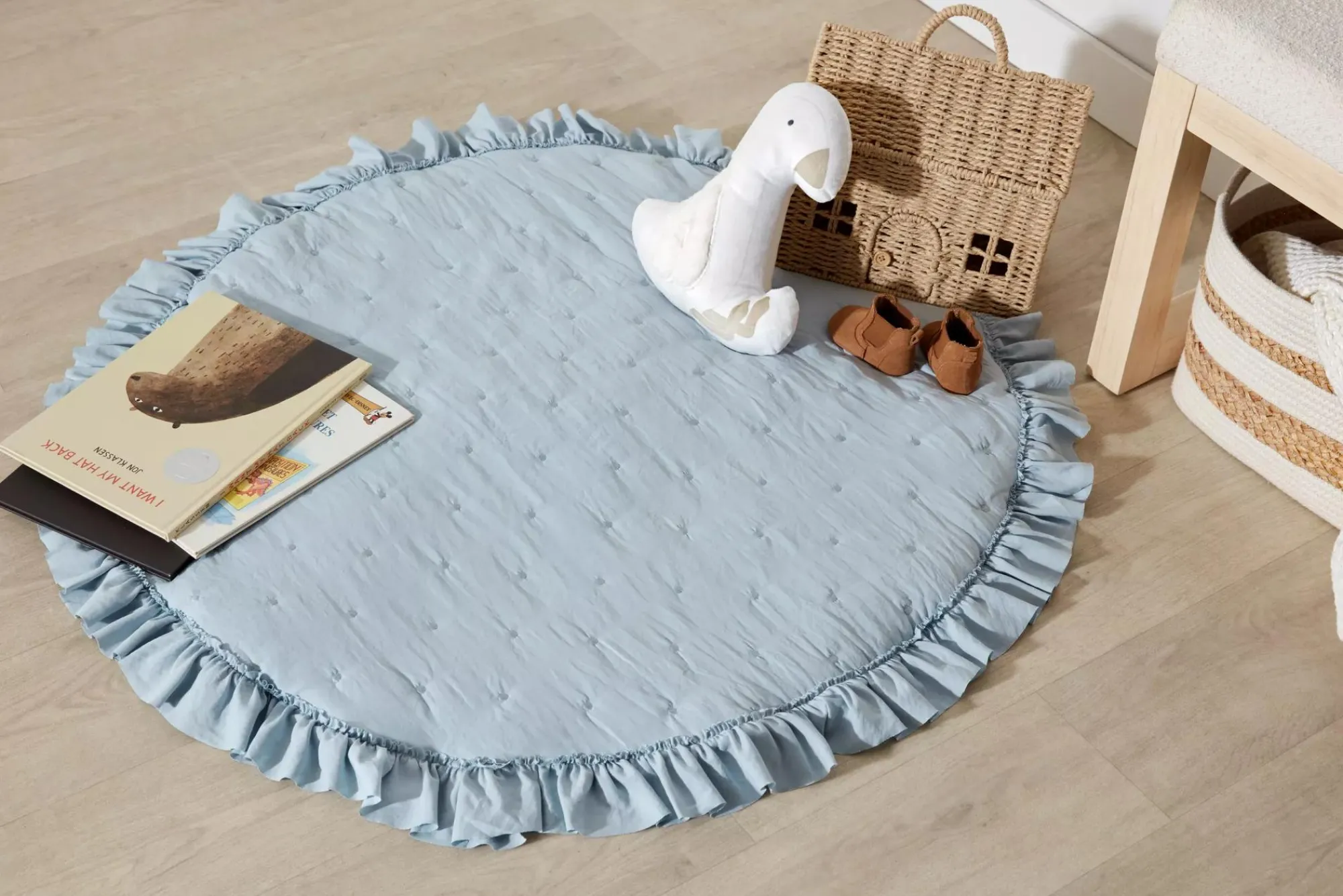The perfect storage solution for baby’s room this rattan storage basket is in the shape of a house and is ideal for storing small items such as baby books toys or everyday essentials. It’s sweet and not overwhelming making it an easy addition to the nursery.