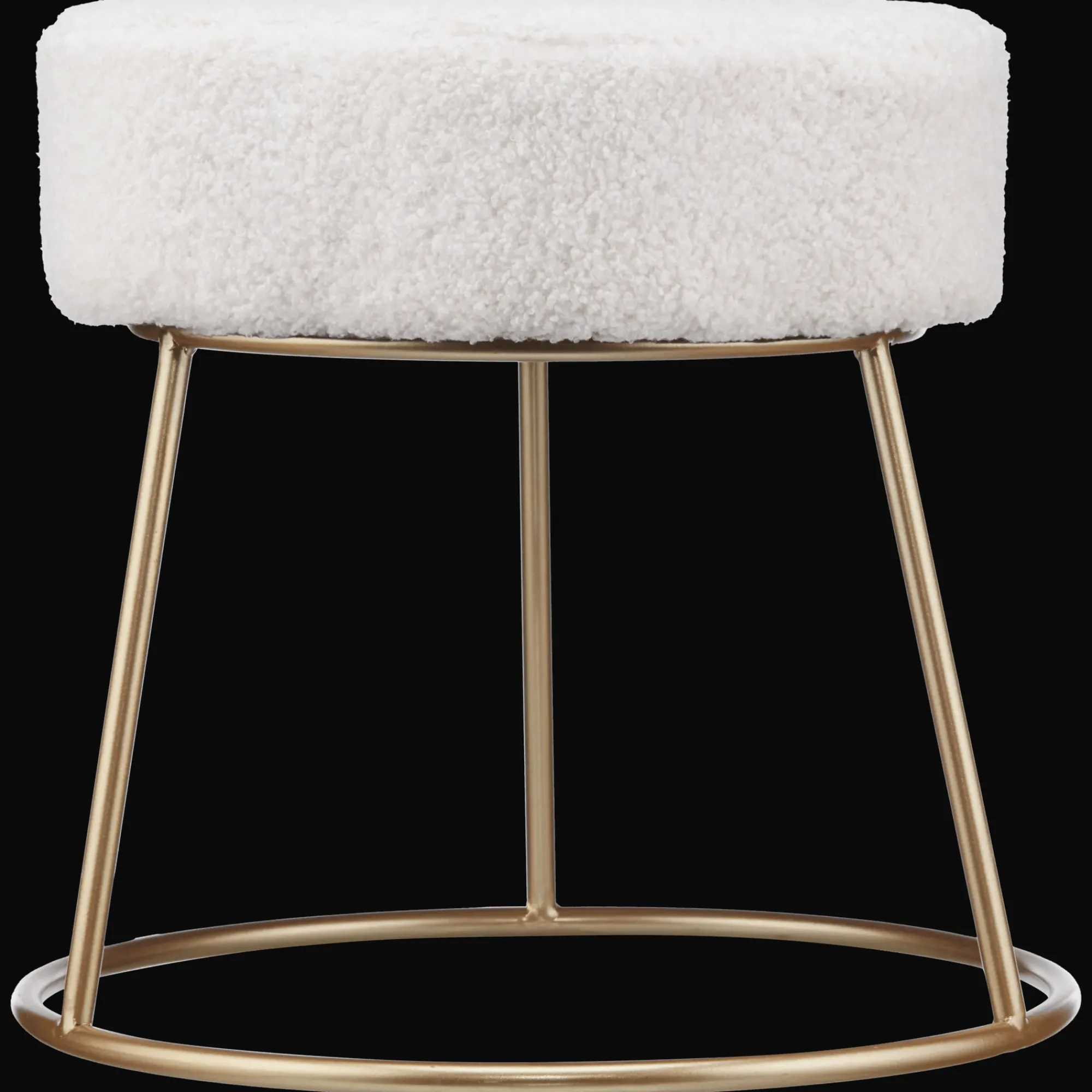 A floral-inspired bouclé seat sits atop a slim golden base. This little stool brings softness, shape, and a pop of glam, perfect for layering into any space.