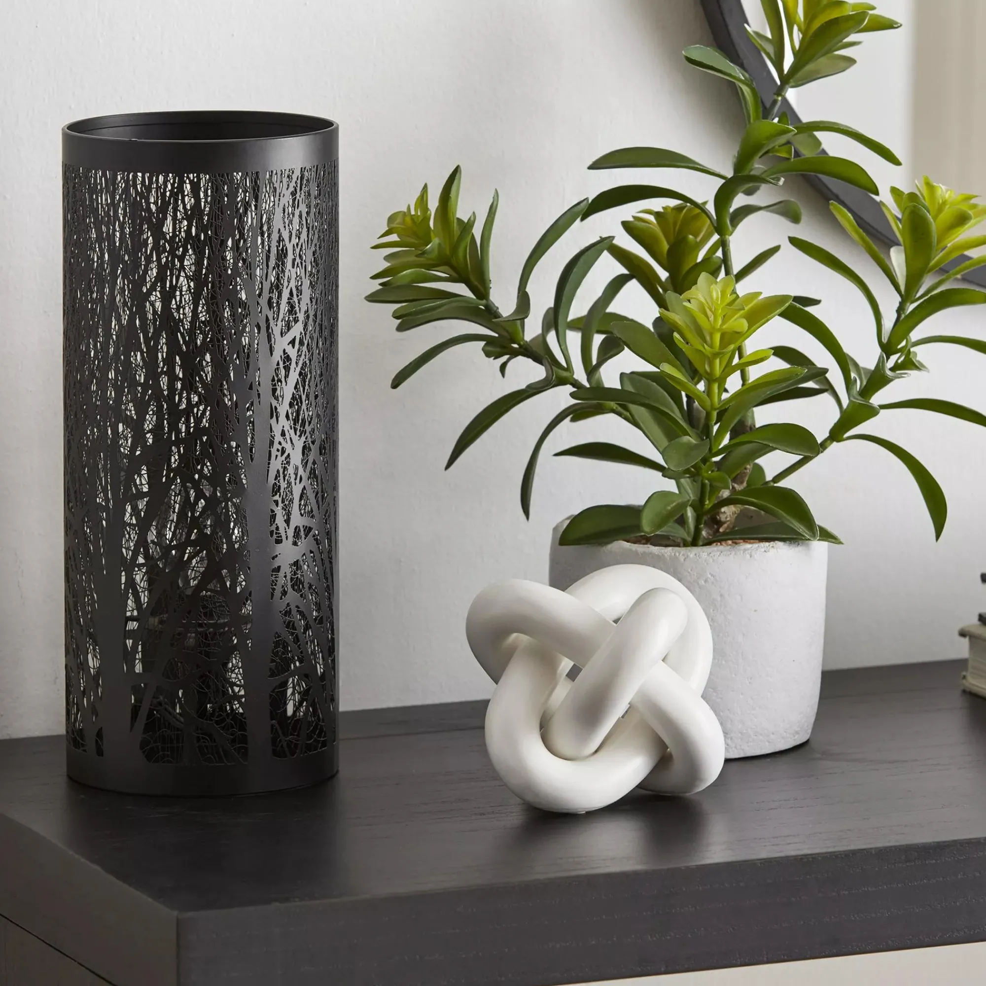 Switch up the ambiance in any room with this stunning black metal lamp featuring beautiful tree-inspired cutouts that are sure to cast beautiful shadows on your wall. We think it would be a gorgeous pick for a bedroom a child’s room or for a living room.