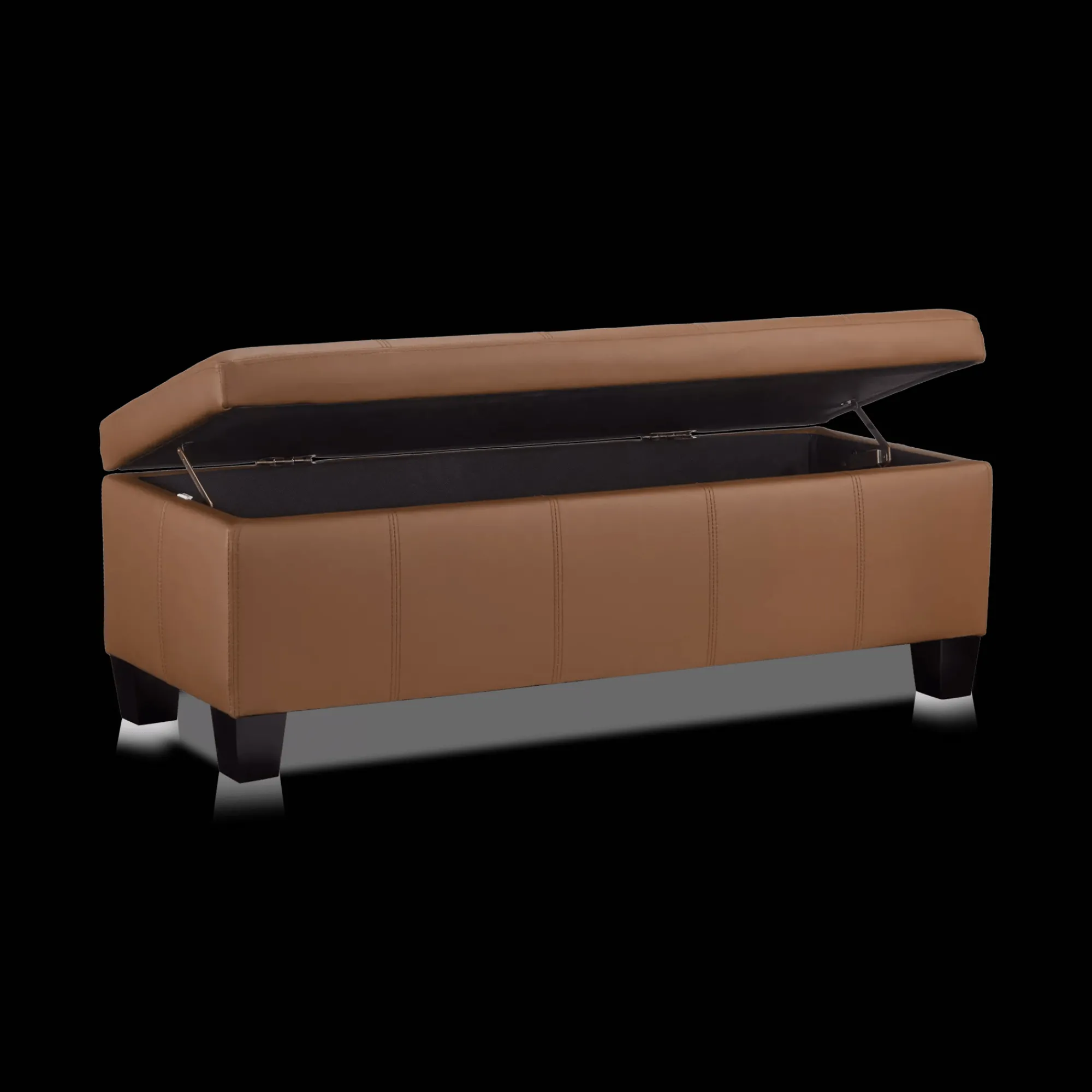 Bring this stylish lidded ottoman into your decor and it’ll soon become the hardest working piece of furniture in your home corralling clutter storing extra blankets and out-of-season clothing or serving as an alternative to a coffee table. Made of faux leather this modern piece sits upon grey legs to deliver the perfect mix of function and fashion. Use it in your entryway bedroom or living room to stash all your stuff and enjoy your newly tidied space.